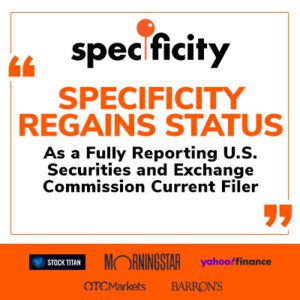 TAMPA, FLORIDA / ACCESS Newswire / July 22, 2025 / Specificity Inc. (OTCIQ:SPTY) (the “Company”), a disruptor in the digital marketing space, is pleased to announce that it has regained status as a fully reporting U.S. Securities and Exchange Commission current filer. Please visit here to see Specificity’s filings: https://www.sec.gov/edgar/browse/?CIK=1840102&owner=exclude Jason Wood, Chief Executive Officer of Specificity, commented, “We…