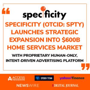 Tuesday, 17 February 2026 10:00 AM Topic: Company Update SARASOTA, FL / ACCESS Newswire / February 17, 2026 / Specificity (OTCID:SPTY), a full-service advertising agency powered by proprietary AI-driven fraud prevention and real-time intent technology, today announced its strategic expansion into the U.S. home services sector – a market exceeding $600 billion annually. The initiative marks a focused vertical…