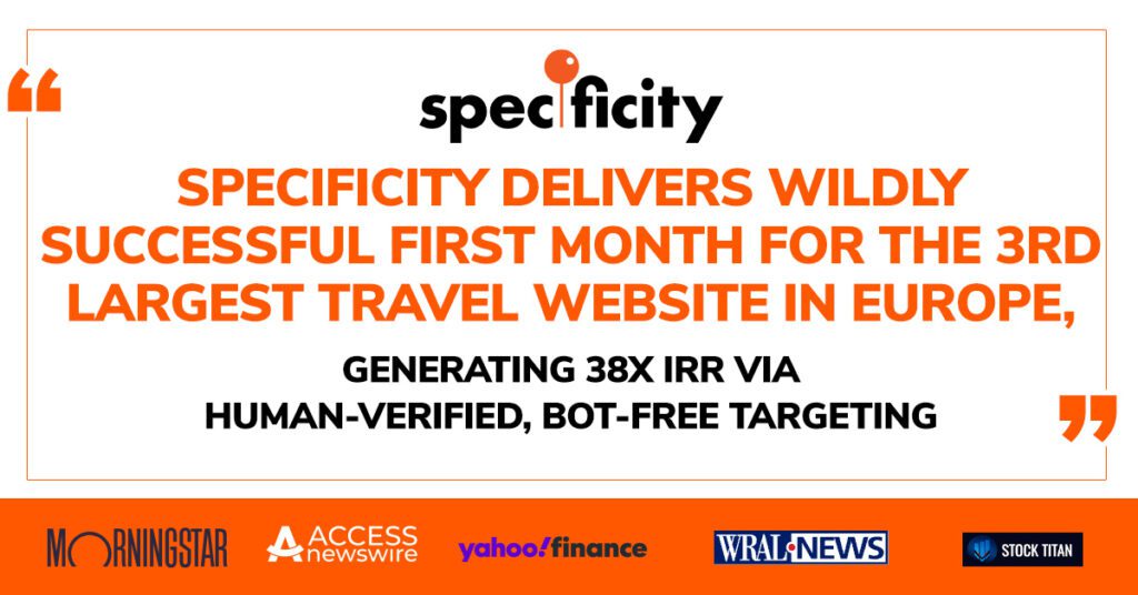 “Specificity’s tech stack is seriously disruptive to the adtech and digital marketing industry,” said Jason Wood, Founder of Specificity. “More and more case studies will be coming as we acquire new clients in our journey to scale this company. We’re almost hesitant to publish them as they can be perceived as unbelievable. All the more reason enterprise-level brands need to reach out to us immediately. This case study demonstrates the powerful impact that clean, bot-free audience data can have on ROI and supports our belief that the biggest hurdle in this space is fraud delivered via bot traffic and errant data.”