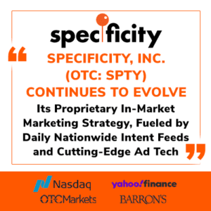 Specificity, Inc. (SPTY) Expands Its Proprietary In-Market Marketing Strategy—Now Powering Social and Display Ads with the Same High-Intent Audiences It Delivers TAMPA, FL / ACCESS Newswire / March 19, 2025 / Specificity, Inc. (OTC PINK:SPTY), a leader in digital marketing innovation, is proud to announce the evolution and expansion of its industry-disrupting, in-market marketing strategy. At the core…